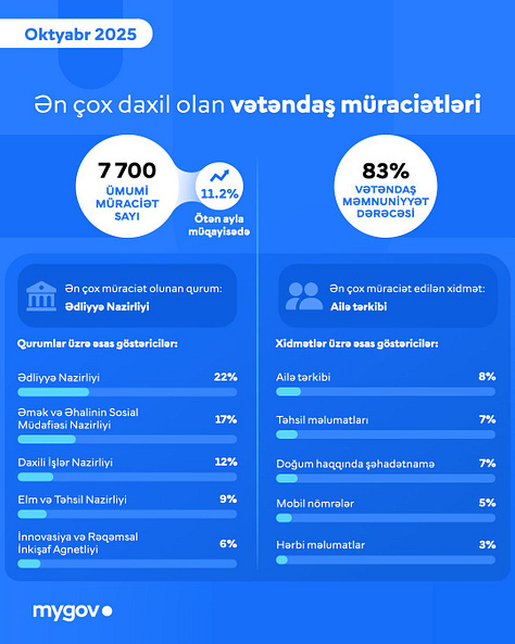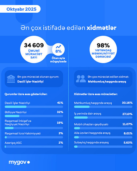 2025-ci ilin oktyabr ayında mygov-dan istifadə statistikasını yayımlayıblar: